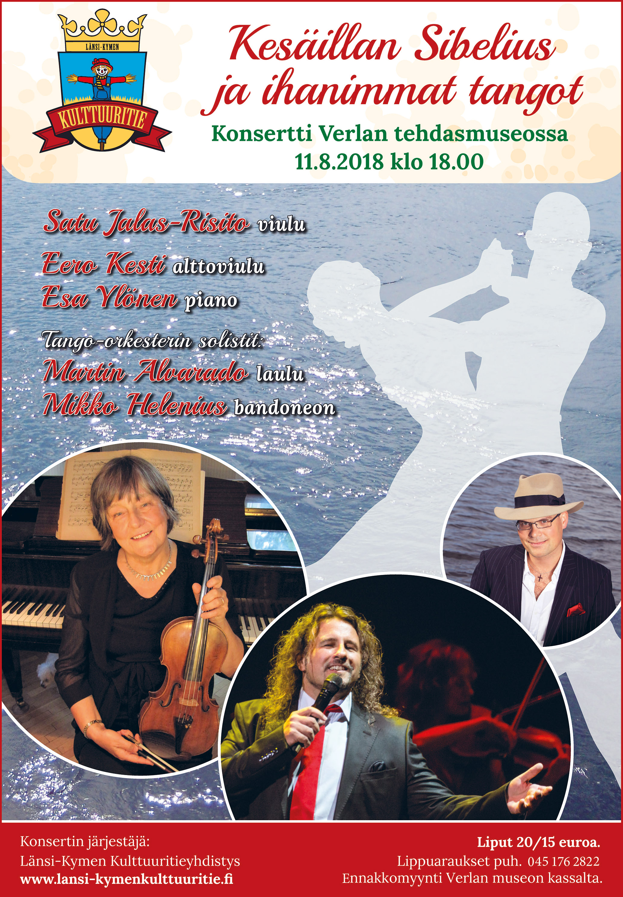 Tiedustelut ja varaukset 040 518 5225 tai info@kymisun.fi. Lippuja saa myös paikan päältä.